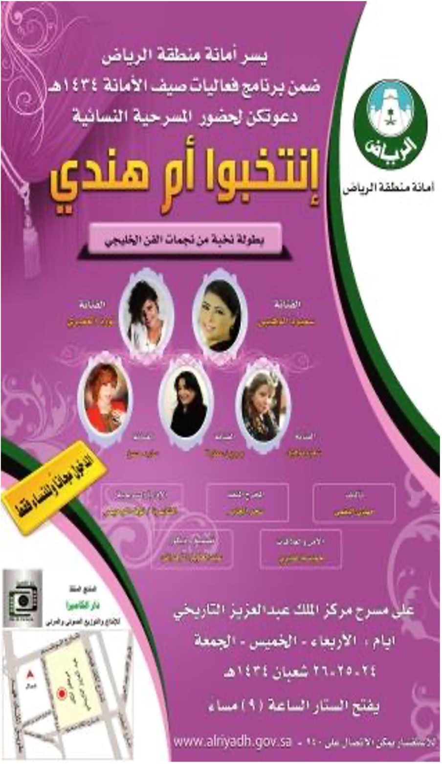 - مسرحية انتخبوا أم هندي : عام (2013) عرضت في مدينة الرياض، بطولة نورا العميري، ساره الحسن، سارة الجابر، شعاع توفيق، سميرة الوهيبي.
