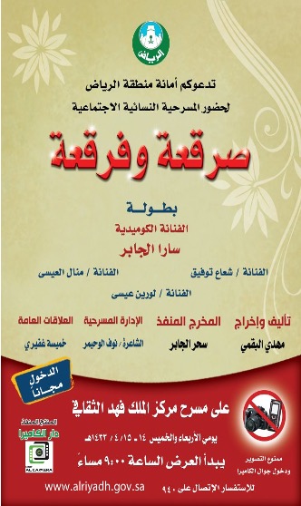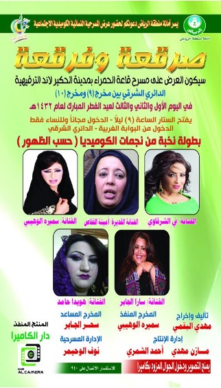 - مسرحية صرقعة وفرقعه : عام (2011) في عدد من مناطق السعودية، بطولة سميرة الوهيبي، أمينة القفاص، في الشرقاوي، سارة الجابر وغيرهم .