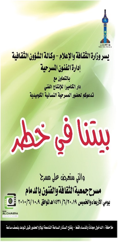 - مسرحية بيتنا في خطر : عام (2009) قدمت في عدد من مناطق السعودية.