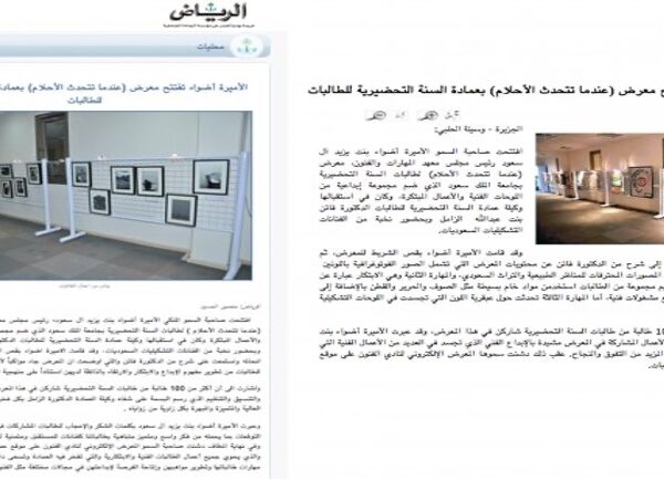 قامت مؤسستنا بتصميم وتنفيذ العديد من المعارض الفنية لجهات مختلفة من بينها جامعة الملك سعود بالرياض قسم البنات، حيث أقمنا أكثر من معرض وفي أكثر من مناسبة.
